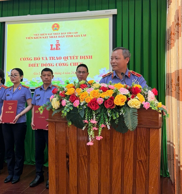 Sáng ngày 14/4/2026, Viện KSND tỉnh Gia Lai tổ chức Lễ công bố và trao quyết định điều động công chức thuộc ngành Kiểm sát nhân dân tỉnh Gia Lai.
