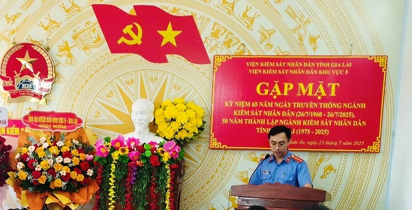 Chiều ngày 25/7/2025, trong không khí trang trọng và đầy tự hào, Viện KSND Khu vực 6 tỉnh Gia Lai đã tổ chức Lễ kỷ niệm trọng thể 65 năm Ngày truyền thống ngành KSND (26/7/1960 - 26/7/2025), 50 năm truyền thống ngành KSND tỉnh Gia Lai (1975 – 2025) và 49 năm thành lập Viện KSND huyện Hoài Nhơn (nay là Viện KSND khu vực 6) (1976 - 2025). Buổi lễ không chỉ là cột mốc đánh dấu chặng đường dài xây dựng và trưởng thành của ngành Kiểm sát nói chung, Viện KSND Khu vực 6 nói riêng, mà còn là dịp để tôn vinh, biết ơn những đóng góp to lớn của các thế hệ cán bộ, công chức qua từng giai đoạn, đồng thời tiếp thêm động lực cho thế hệ hiện tại và tương lai. Tham dự buổi lễ có đồng chí Trần Minh Quốc, Phó Bí thư Đảng ủy, Phó Viện trưởng Viện KSND tỉnh Gia Lai; các thế hệ lãnh đạo, công chức của đơn vị đã nghỉ hưu hoặc chuyển công tác qua các thời kỳ; đại diện lãnh đạo các Phòng, Văn phòng Viện KSND tỉnh Gia Lai, cùng toàn thể công chức, người lao động Viện KSND Khu vực 6.