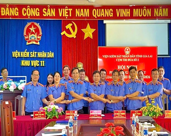Thực hiện Chỉ thị số 02/CT-VKSTC ngày 14/10/2025 của Viện trưởng Viện KSND tối cao về phát động phong trào thi đua yêu nước trong ngành Kiểm sát nhân dân năm 2026 và Kế hoạch số 2306/KH-VKS ngày 10/11/2025 của Viện KSND tỉnh Gia Lai về công tác thi đua, khen thưởng của ngành KSND tỉnh Gia Lai năm 2026. Ngày 26/12/2025, tại Viện KSND khu vực 11, Cụm thi đua số 2 ngành Kiểm sát nhân dân tỉnh Gia Lai đã tổ chức Lễ ký kết giao ước thi đua năm 2026.